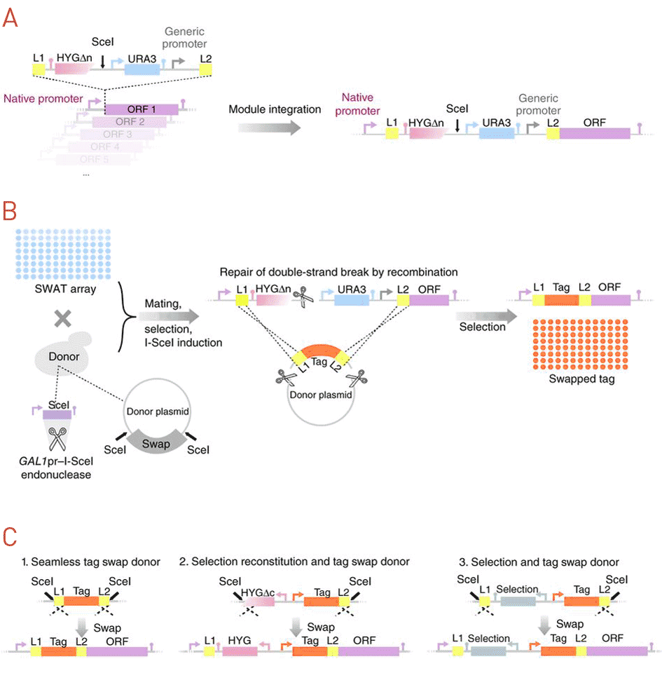 文章來(lái)源:(2016) One Library to make them all: Streamlining yeast library creation by a SWAp-Tag (SWAT) strategy. Nature methods 13: 371-378