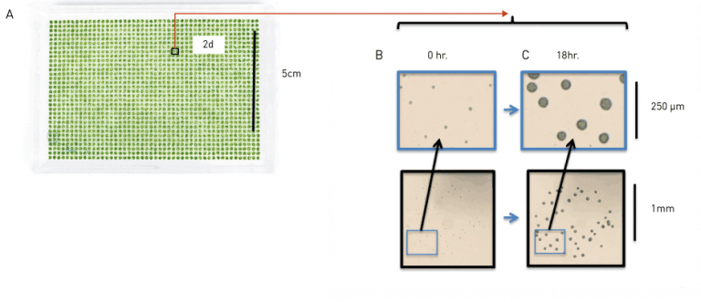 可以看到菌落具有明顯的活力,基本上每個(gè)細(xì)胞被接種18小時(shí)都形成了一個(gè)微菌落(圖1C)。平板的圖像顯示了接種區(qū)域的再生性,不同平板之間也觀(guān)察到良好的再生性。