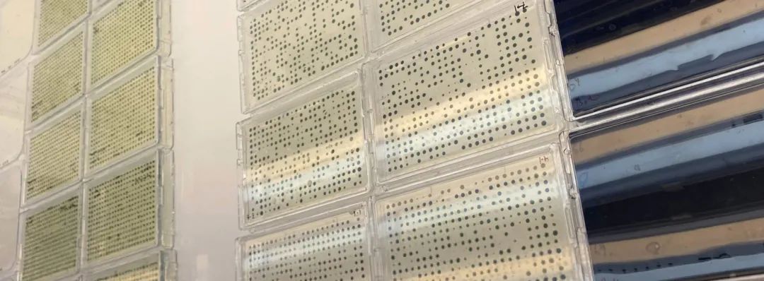 用Singer PlusPlates方板,注入50ml的TAP瓊脂(標(biāo)準(zhǔn)衣藻培養(yǎng)基),并添加了50μg/ml氨芐西林來(lái)抑制細(xì)菌污染。由于衣藻在液體介質(zhì)中具有很強(qiáng)的流動(dòng)性,對(duì)光線(xiàn)也有很強(qiáng)的敏感性,因此需要將ROTOR+上的內(nèi)部光源取下,并在操作過(guò)程中盡可能遮擋光線(xiàn)。如果沒(méi)有這種預(yù)防措施,藻類(lèi)會(huì)在源板的不同區(qū)域強(qiáng)烈聚集,會(huì)嚴(yán)重影響整個(gè)板的菌落再現(xiàn)性。