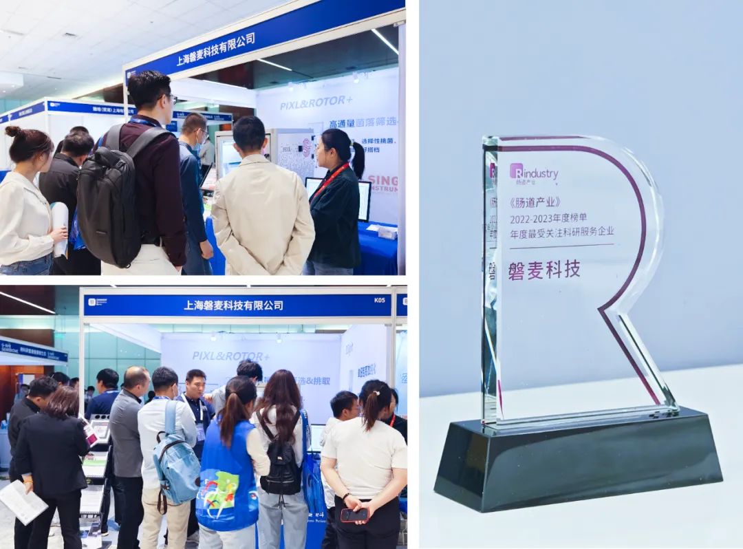 磐麥科技參加并贊助了本次大會(huì),并獲得《腸道產(chǎn)業(yè)》2022-2023年度榜單-年度最受關(guān)注科研服務(wù)企業(yè)獎(jiǎng)。展會(huì)期間,磐麥科技展臺(tái)吸引了眾多專家學(xué)者駐足交流,對(duì)展出的產(chǎn)品零距離接觸。
